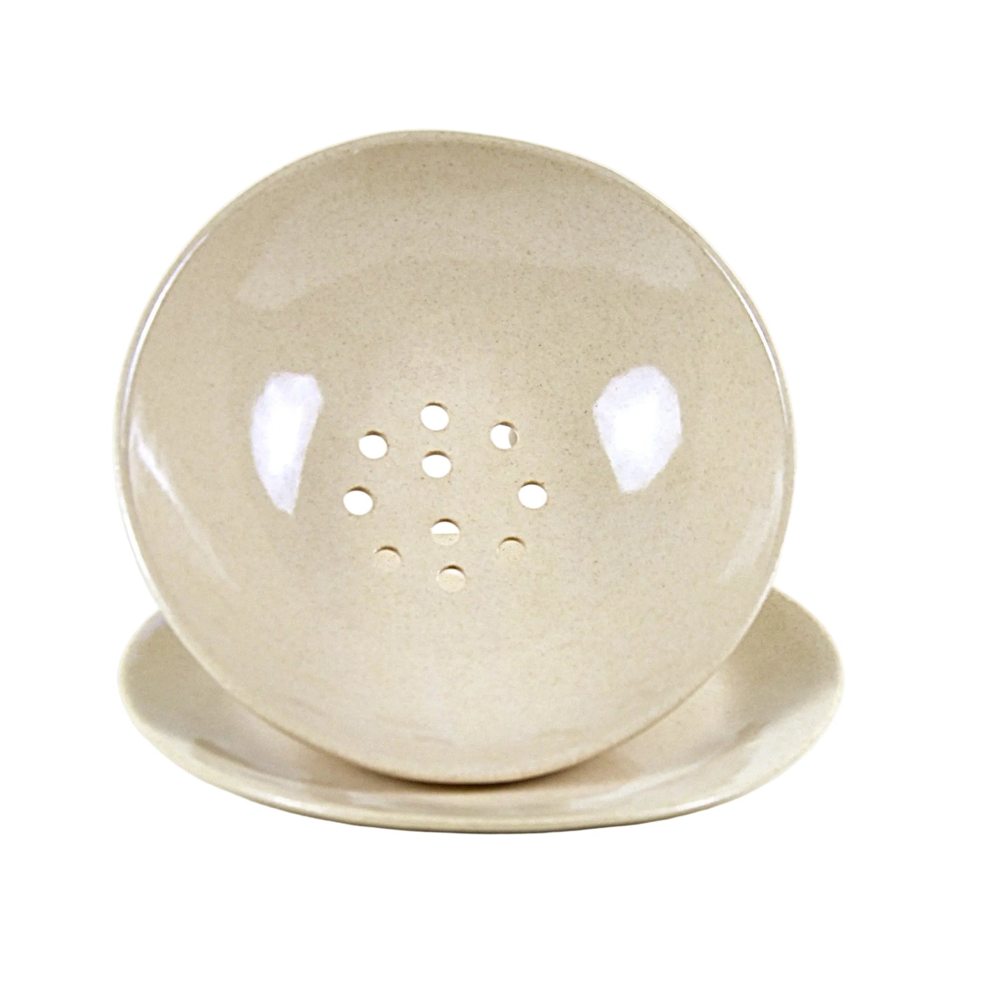 O nosso ESCORREDOR em cerâmica foi desenvolvido para quem acredita que os objetos so dia a dia devem ter alma. Cada duro é feito manualmente, criando um padrão orgânico que permite que a agua escorra com facilidade e que o ar circule, mantendo os seus morango ou outras frutas por mais tempo.